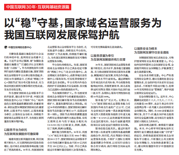 人民郵電報:以“穩”守基,國家域名運營服務為我國互聯網發展保駕護航