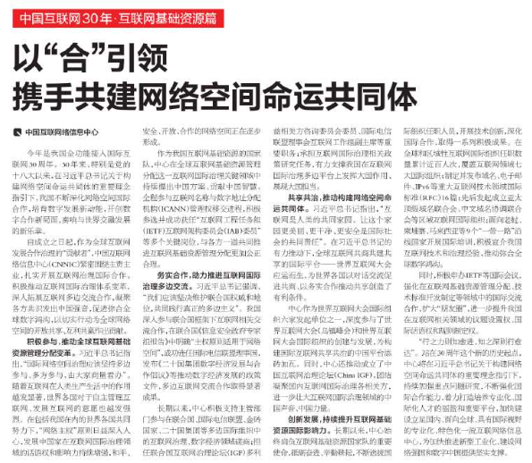 人民郵電報:以“合”引領 攜手共建網絡空間命運共同體