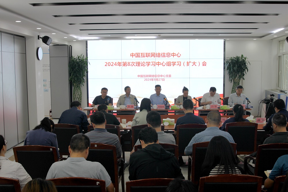 9月27日,中國互聯網絡信息中心黨委召開2024年第8次理論學習中心組學習(擴大)會,此次學習采取集中讀書、觀看專題片、研討交流相結合的方式,分專題深入學習領悟習近平經濟思想、習近平法治思想以及習近平文化思想。中心主任、黨委書記劉郁林主持會議,理論學習中心組成員結合工作職責作學習發言。