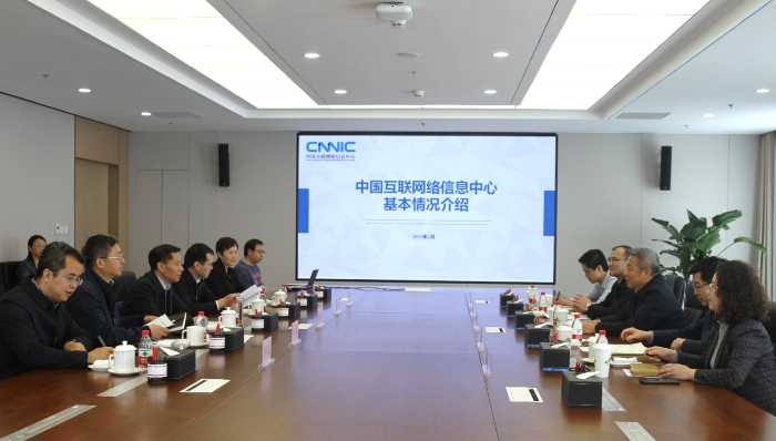 2月21日下午,中國機電設備招標中心(工業和信息化部政府采購中心)主任劉愛民、黨委書記毛強一行到我中心調研,參觀了科研樓,觀看了國家頂級域名全球服務平臺演示,并進行座談交流。我中心主任、黨委書記劉郁林主持交流座談會。招標中心副主任劉華魯,我中心副主任李強,黨委副書記、紀委書記呂堅及雙方相關處所負責人參加調研交流。
